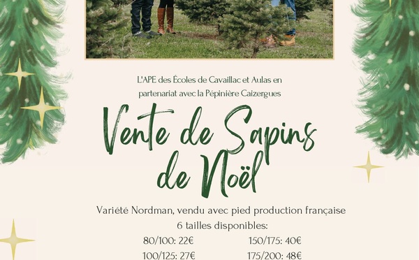 L'équipe de l'APE de l'école intercommunale de Molières-Cavaillac et l'école élémentaire d'Aulas vous propose une vente de Sapins de Noël au profit des écoles Maternelle de Cavaillac et d'Aulas....