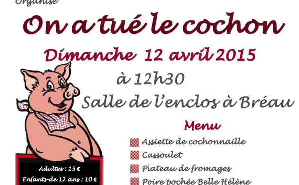 FEST'A BREAU vous invite a participer à son traditionnel repas de cochonnailles le dimanche 12 avril 2015 à partir de 12 h 30 à la salle de l'enclos.  Pour tous renseignements et inscription,...