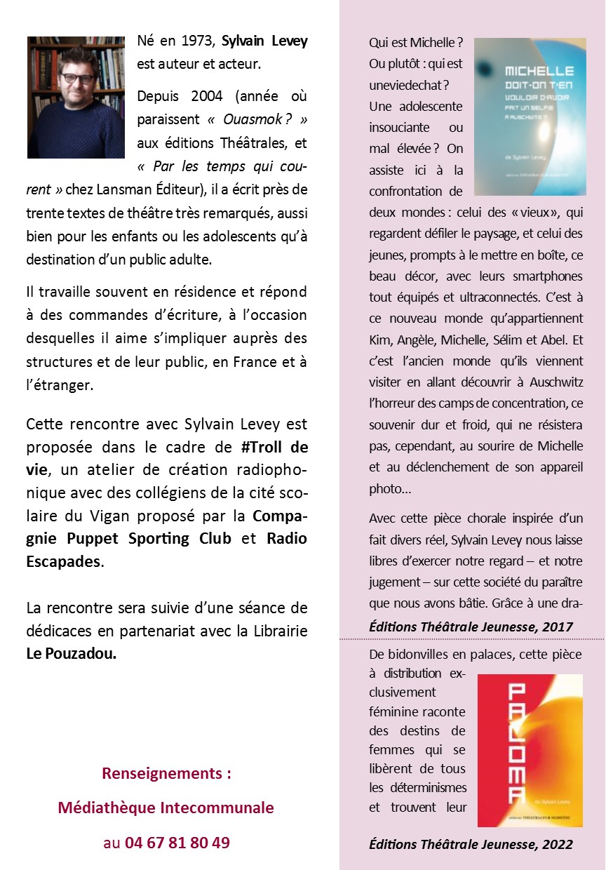 Pour la lecture des « Récits de vie » celle-ci est reportée, pour des raisons indépendantes de notre volonté, au jeudi 21 avril 2022.