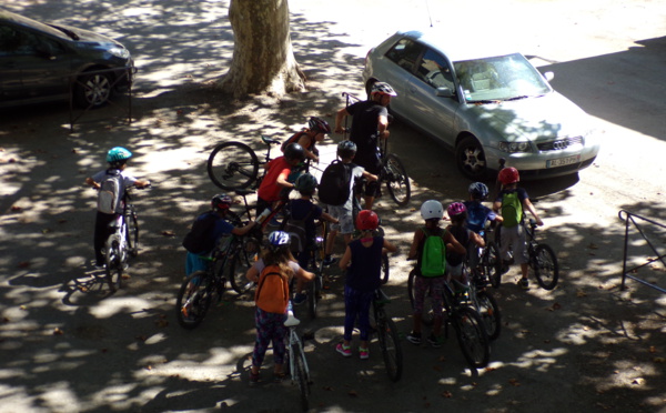 Vérification des vélos avant un départ des enfants très motivés à la pratique du vélo avec Gaëtan !!!